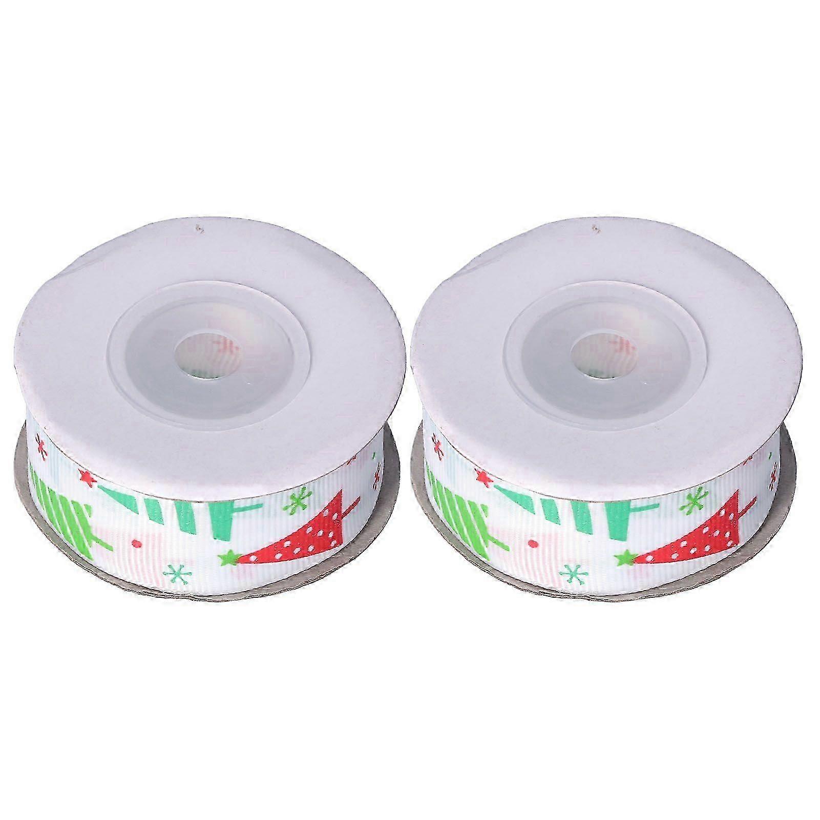 2025 Latest Model 2 Rolls Christmas Ribbon Wide Print Christmas Tree White