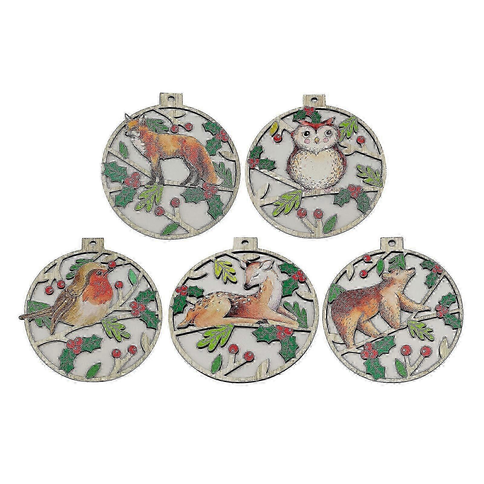 2025 Latest Model 5Pcs Merry Christmas Wooden Round Baubles Tags Christmas Balls