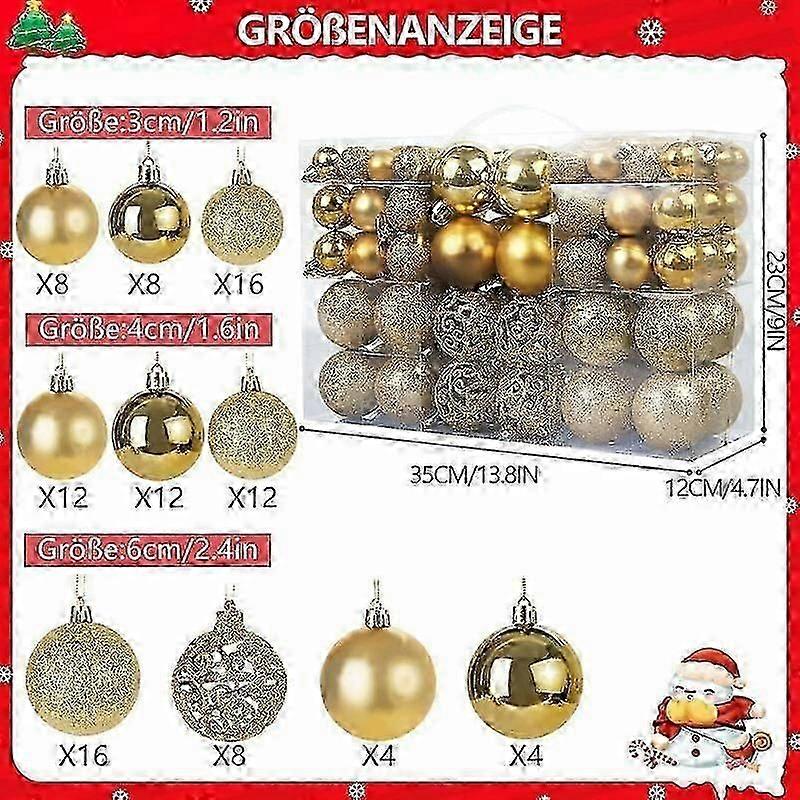 2025 Latest Model Pack of 100 gold Christmas tree baubles, glittery, opaque