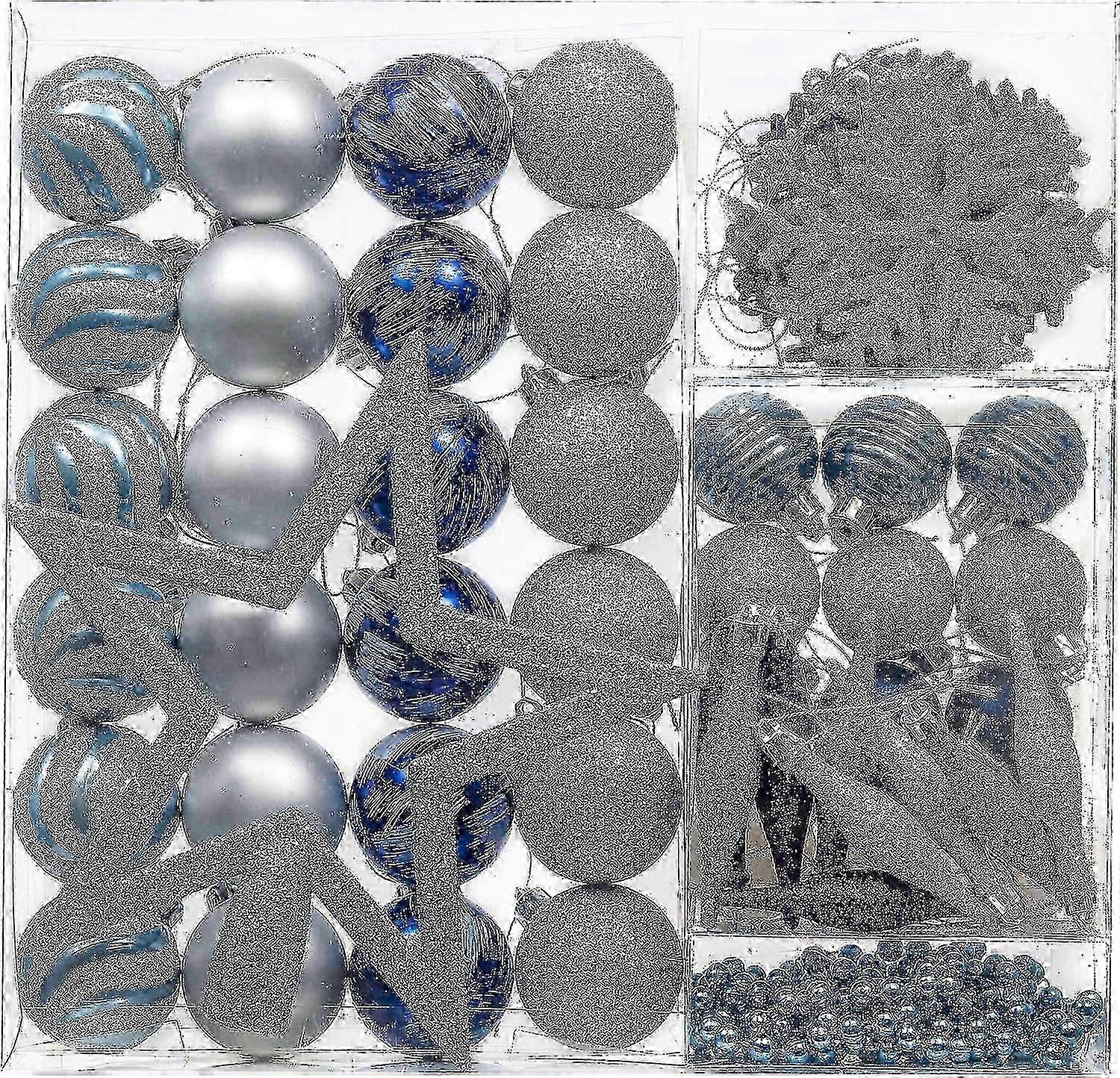 2025 Valery Madelyn 60pcs 3-5cm Shatterproof Christmas Baubles Winter Wishes Silver And Blue Christmas Ball Ornaments For Christmas Tree Decorations
