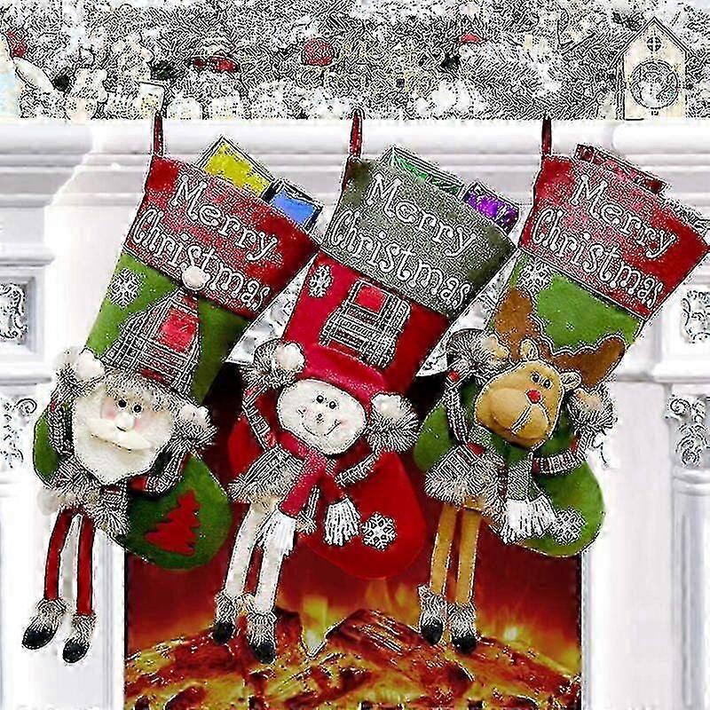 3-piece Christmas stocking: Santa Claus, snowman and reindeer with dangling legs. These are the cutest Christmas socks this season. Between Santa Claus and his friends, there is a figure that everyone in your family will love. Good quality: made of flannel and non-woven fabric. Durable and washable, reusable and easily folds flat to save space when not in use. Dimensions: 60cm from top to bottom. The opening measures 25 cm. Large Christmas fireplace stockings can be filled with Christmas essentials such as candy, gift toys, etc. Each one comes with fabric hanging loops, so you can easily and safely hang them on trees, fireplaces, walls, etc. All details are included carefully designed and are perfect for filling a variety of gifts. Beautiful look: traditional and classic Christmas elements, beautiful party gift for a matching Christmas tree and a wonderful way to give gifts this holiday season, fun for the whole Family.Note: Due to the light and screen setting difference, the item's color may be slightly different from the pictures. Please allow slight dimension difference due to different manual measurement. Sold by-DIMEANI official store