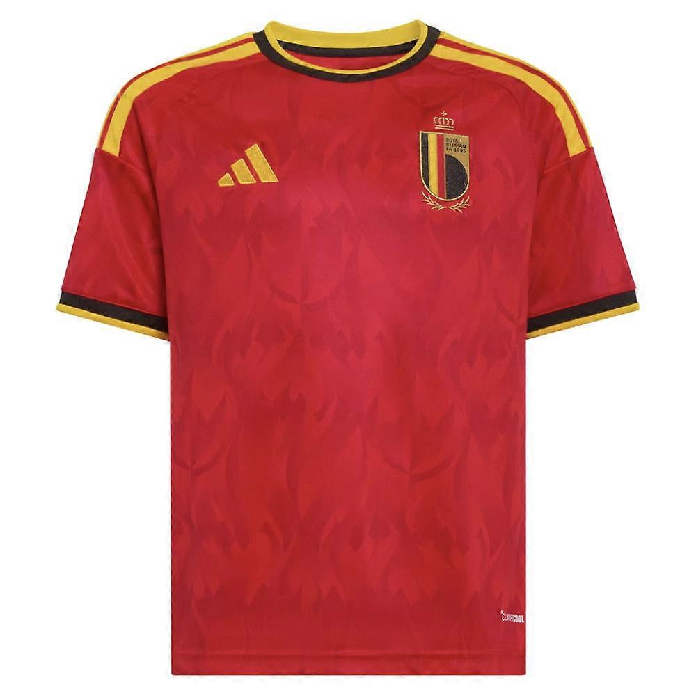 Ignite your young Red Devil\'s passion with the official Belgium 2026 Adidas Home Shirt for kids. This stunning jersey celebrates Belgian football heritage whilst embracing cutting-edge sportswear technology, making it perfect for budding supporters who want to show their colours with pride.Bold Design for Bold SupportersDressed in Belgium\'s iconic red, this home shirt features striking design details that honour the national team\'s fierce spirit. The classic Adidas three stripes and authentic team crest sit proudly on the chest, whilst modern graphic elements add a contemporary edge that young fans will love. Whether they\'re cheering from the stands or playing in the park, your little one will look every bit the part.Performance Meets ComfortEngineered with Adidas\'s renowned moisture-wicking technology, this shirt keeps young supporters cool and comfortable throughout the match or during their own kickabouts. The lightweight, breathable fabric ensures unrestricted movement, whilst the regular fit provides a relaxed, comfortable feel that\'s ideal for all-day wear.Make It PersonalTransform this official Belgium shirt into something truly special with our personalisation service. Add your child\'s name, their favourite player\'s name, or a lucky number to create a unique piece they\'ll treasure. It\'s the perfect way to make match day extra memorable or to create an unforgettable gift for the young football fanatic in your life.PersonalisationName & Number - Customise your jersey with the name and number of your favourite Belgium player or even your own name. We can print name in the same style worn by the players.