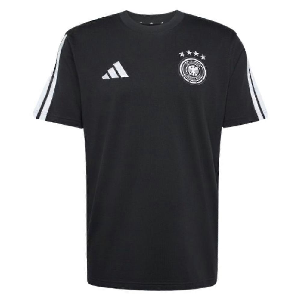Celebrate German football heritage with this striking Germany 2026 Adidas DNA Tee in classic black. Designed for true fans who want to showcase their passion with pride, this tee seamlessly blends iconic style with modern comfort.Product FeaturesCrafted from premium soft-touch fabric, this tee delivers exceptional comfort whether you\'re at the stadium, watching the match with mates, or going about your day. The bold Germany crest sits proudly on the chest, whilst Adidas\' signature three stripes and DNA-inspired graphics pay homage to the rich history of German football.The relaxed fit ensures all-day wearability, whilst moisture-wicking technology keeps you cool and dry. The black colourway offers versatile styling options pair it with jeans for a casual look or layer it under a jacket for those cooler matchdays.PersonalisationName & Number - Customise your jersey with the name and number of your favourite Germany player or even your own name. We can print name in the same style worn by the players.