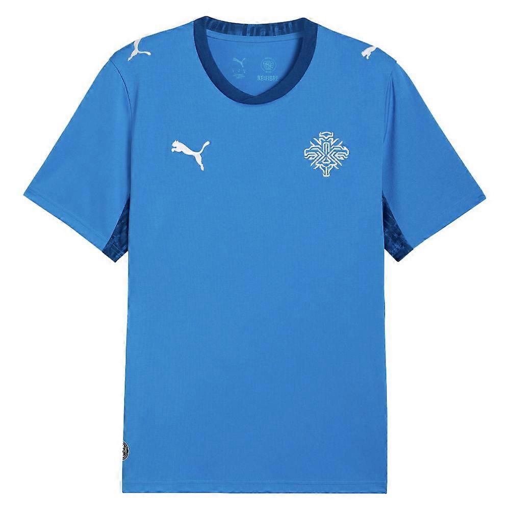 Celebrate the spirit of Icelandic football with the stunning 2026 Puma Home Shirt. This officially licensed replica captures the bold identity of one of Europe\'s most exciting national teams, combining contemporary design with authentic team pride.Product DetailsThe Iceland 2026 Home Shirt showcases the nation\'s iconic blue colourway, rendered in Puma\'s latest performance fabric technology. The shirt features a striking design that pays homage to Iceland\'s dramatic landscapes and volcanic heritage, with subtle graphic elements woven throughout the fabric that catch the light as you move.Constructed from moisture-wicking material, this shirt keeps you comfortable whether you\'re cheering from the stands, playing five-a-side with mates, or simply showing your support around town. The breathable fabric ensures optimal ventilation, whilst the ergonomic cut provides freedom of movement for all-day wear.The shirt displays Puma\'s signature styling with the iconic jumping cat logo positioned on the chest, alongside the proud Iceland Football Association crest. Finished with the classic crew neck collar and short sleeves, this is essential kit for any supporter of Strkarnir okkar (Our Boys).Personalisation OptionsMake this shirt truly yours with our personalisation service. Add your favourite player\'s name and number, or create a unique shirt with your own name on the back. All printing is done to official specifications using high-quality.PersonalisationName & Number - Customise your jersey with the name and number of your favourite Iceland player or even your own name. We can print name in the same style worn by the players.