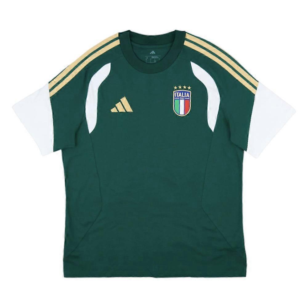 Elevate your training sessions with the official Italy 2026 Adidas Training Tee in a striking green colourway. Designed for the Azzurri\'s preparation ahead of the 2026 tournament, this premium training shirt combines Italian footballing heritage with cutting-edge athletic performance.Key FeaturesCrafted from Adidas\'s advanced moisture-wicking fabric, this training tee keeps you cool and dry whether you\'re perfecting your technique on the pitch or supporting the national team in style. The lightweight, breathable construction ensures maximum comfort during high-intensity workouts, whilst the athletic fit provides unrestricted movement.The eye-catching green design features the iconic Adidas three stripes and the prestigious FIGC (Italian Football Federation) crest, proudly displaying your allegiance to one of football\'s most decorated nations. Subtle design details pay homage to Italy\'s rich sporting tradition whilst maintaining a contemporary aesthetic.Personalisation AvailableMake this training tee uniquely yours with our personalisation service. Add your name, favourite player, or squad number to create a one-of-a-kind piece that celebrates your passion for Italian football. Perfect for collectors, dedicated fans, or as a thoughtful gift for any Azzurri supporter.PersonalisationName & Number - Customise your jersey with the name and number of your favourite Italy player or even your own name. We can print name in the same style worn by the players.