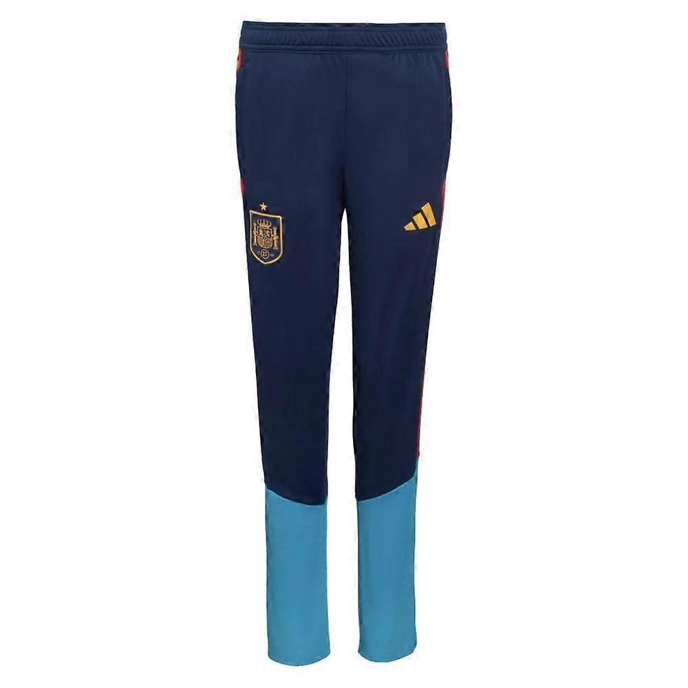 Elevate your young footballer\'s training wardrobe with the official Spain 2026 Adidas Training Pants in sophisticated Night Indigo. Designed for the next generation of La Roja supporters, these premium training bottoms combine authentic Spanish football heritage with cutting-edge sportswear technology.Match-Ready PerformanceCrafted from Adidas\'s advanced moisture-wicking fabric, these training pants keep young athletes cool and comfortable whether they\'re practising skills in the garden or training with their team. The lightweight, breathable material ensures optimal airflow during intense activity, whilst the streamlined fit allows complete freedom of movement for those crucial drills and exercises.Authentic Spanish StyleFeaturing the iconic Spain football crest, these training pants showcase your child\'s pride in one of football\'s most successful national teams. The rich Night Indigo colourway offers a stylish alternative to traditional team colours, making these pants perfect for both training sessions and casual wear. Classic Adidas three-stripe detailing runs down each leg, delivering that unmistakable sporting elegance.Built for ComfortThe elasticated waistband with adjustable drawcord ensures a secure, personalised fit that grows with your child. Convenient zip pockets provide safe storage for small essentials, whilst the tapered leg design with zip ankle cuffs allows for easy on-and-off over football boots.PersonalisationTrainers Personalisation - Customise your item by adding your initials or squad number.