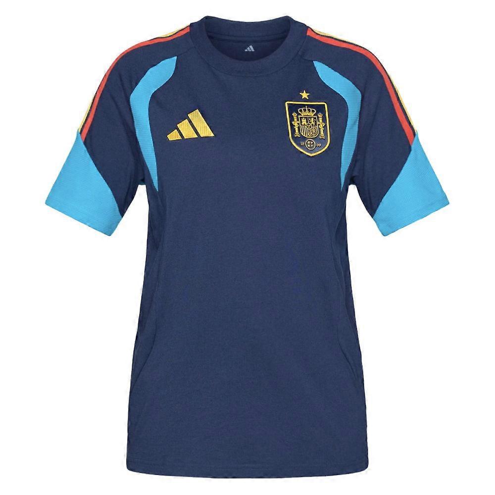 Elevate your training sessions with the official Spain 2025-2026 Adidas Training Tee in sophisticated Night Indigo. Designed for devoted supporters of La Roja, this premium training shirt combines authentic Spanish football heritage with cutting-edge athletic performance.Superior Performance TechnologyEngineered with Adidas\'s advanced moisture-wicking fabric, this training tee keeps you cool and dry whether you\'re pushing through an intense workout or showing your support from the stands. The breathable construction ensures optimal airflow, whilst the lightweight material provides unrestricted movement for maximum performance.Authentic Spanish DesignThe rich Night Indigo colourway offers a fresh take on Spain\'s iconic colours, complemented by signature Adidas detailing and the proud Spanish Football Federation crest. This training shirt captures the essence of one of football\'s most successful national teams, making it perfect for training, casual wear, or match day support.Make It Uniquely YoursPersonalise your training tee with official name and number printing to create a truly bespoke piece of Spanish football memorabilia. Add your favourite player\'s details or make it your own the choice is yours.PersonalisationName & Number - Customise your jersey with the name and number of your favourite Spain player or even your own name. We can print name in the same style worn by the players.