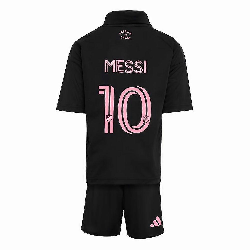 Inter Miami 2026 Lionel Messi Away Mini KitCelebrate the next generation of Inter Miami support with this official 2026 away mini kit expertly crafted by Adidas and finished with Lionel Messis iconic name and number 10. The perfect choice for young fans who want to mirror their heroes on match day and beyond, this complete kit brings together performance, style and club pride in one package.Design & LookThis away minikit features Inter Miamis striking 2026 secondary colours: a sleek black base contrasted with bold Bliss Pink accents. The polo-style shirt collar gives it a premium, classic look that transitions seamlessly from the stands to the street. The Messi