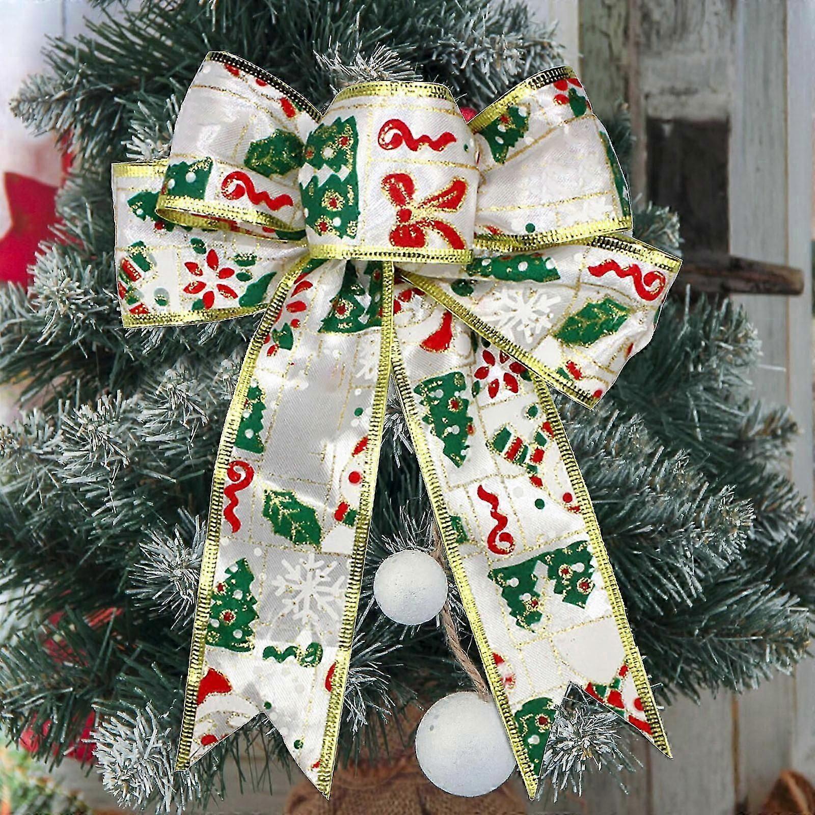 20cm Painted Gold Christmas Bow Hanging Christmas Decorations Christmas Printing Ribbon Bow Home Essentials