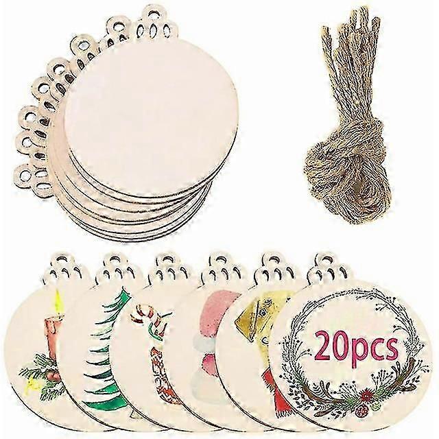 20pcs Wooden Slices Diy Crafts Round Baubles Tags Decorations For Home Party Xmas Tree Pendant Ornaments Supplies