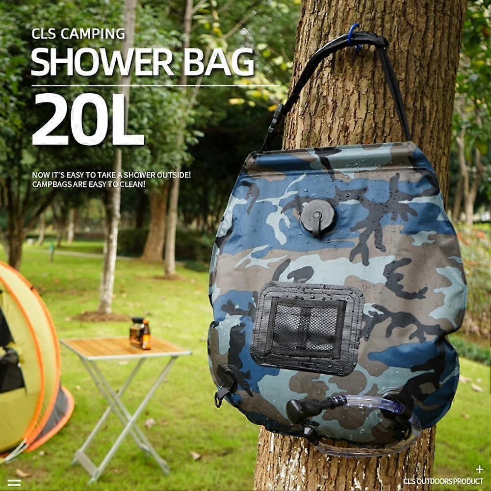 20L Water Bags Outdoor Camping Hiking Shower Bag Portable Camouflage Foldable Climbing Bathtub Bag Hose Switchable Shower Head