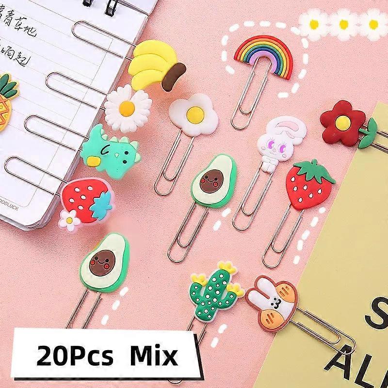 20pcs Cartoon Fruit Animal Paper Clips Metal Bookmarks School Office Supplies