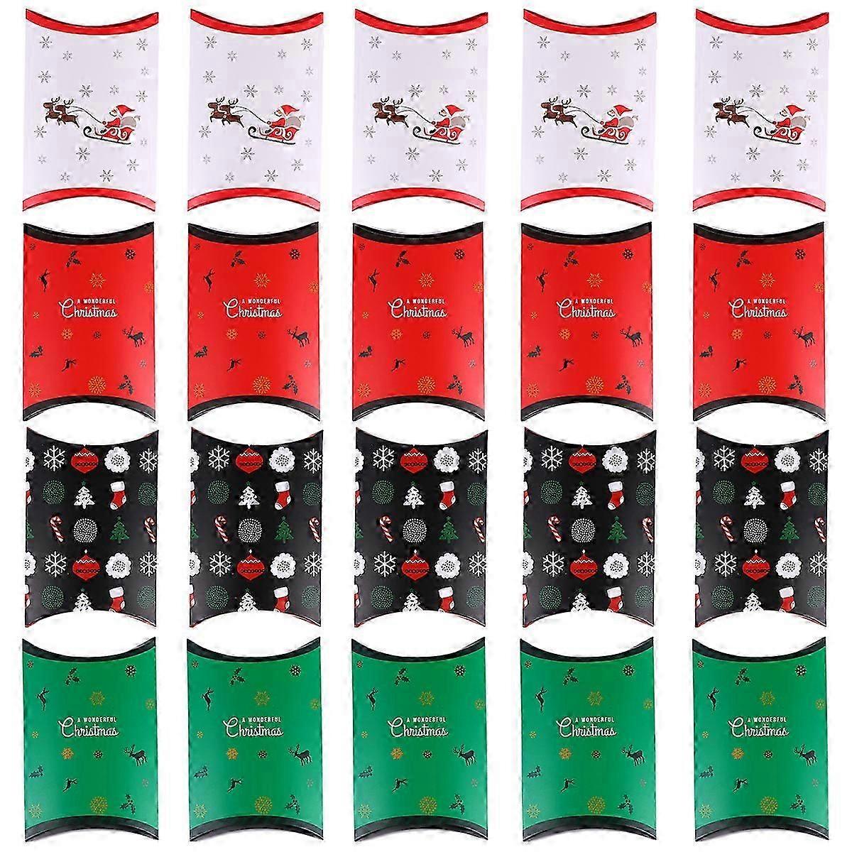 20Pcs Christmas Gift Pillow Box Xmas Designs for Holiday Party Favors Gift Decor