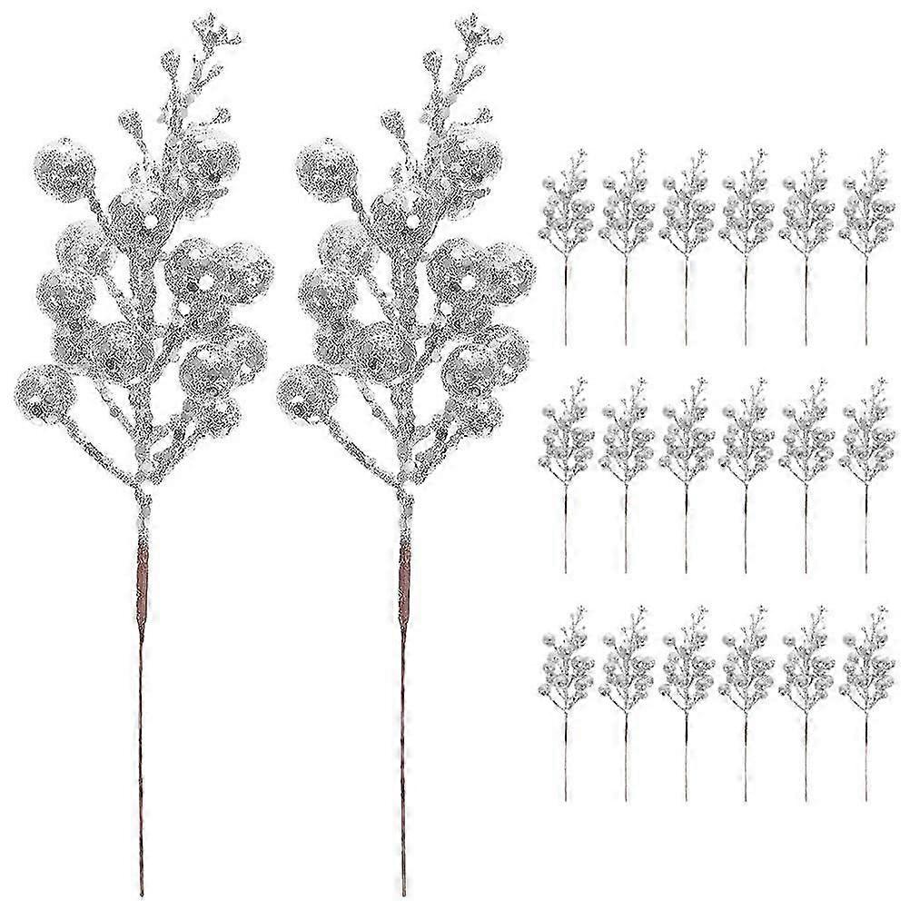 20pcs Christmas Glitter Berries Stems Artificial Christmas Picks Christmas Tree Ornaments
