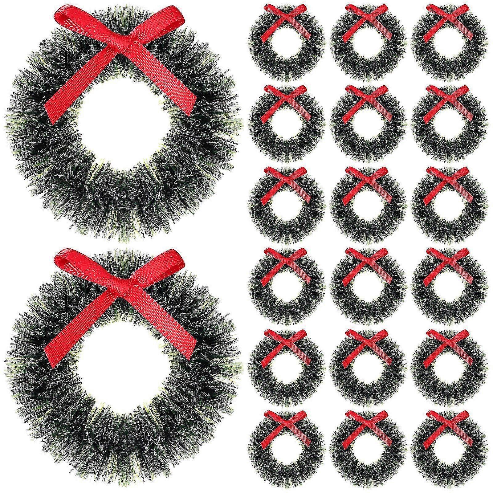 20pcs Mini Christmas Wreaths With Bows Miniature Christmas Wreath Artificial Dollhouse Decoration Christmas Tree Hanging Ornaments For Christmas