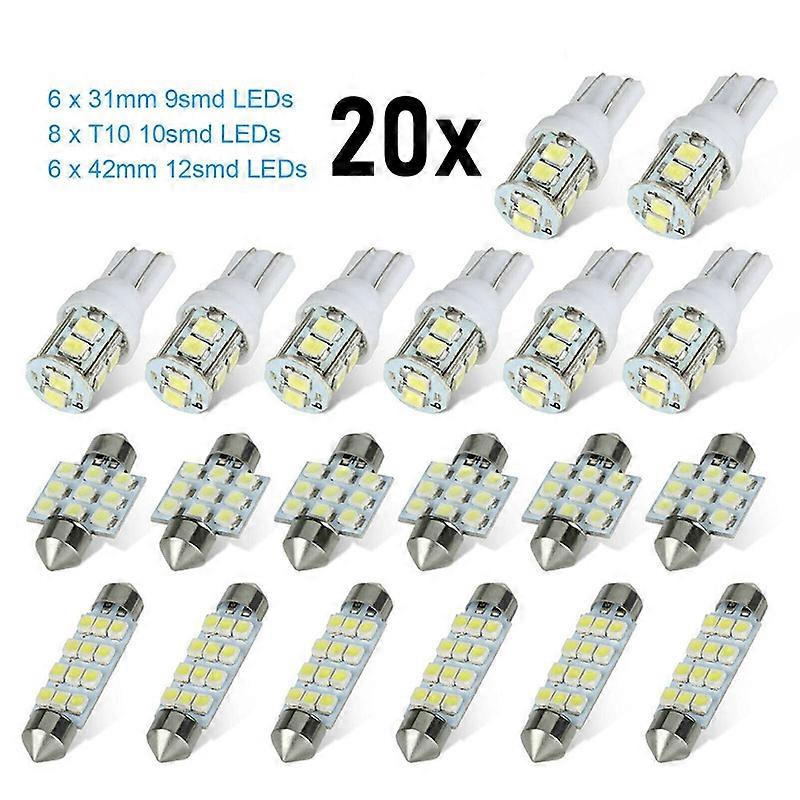 20x Combo Car LED Bulb Interior Indoor Light Dome Door Map License Plate Lighting Luggage Lamp White Super Bright Reading Light