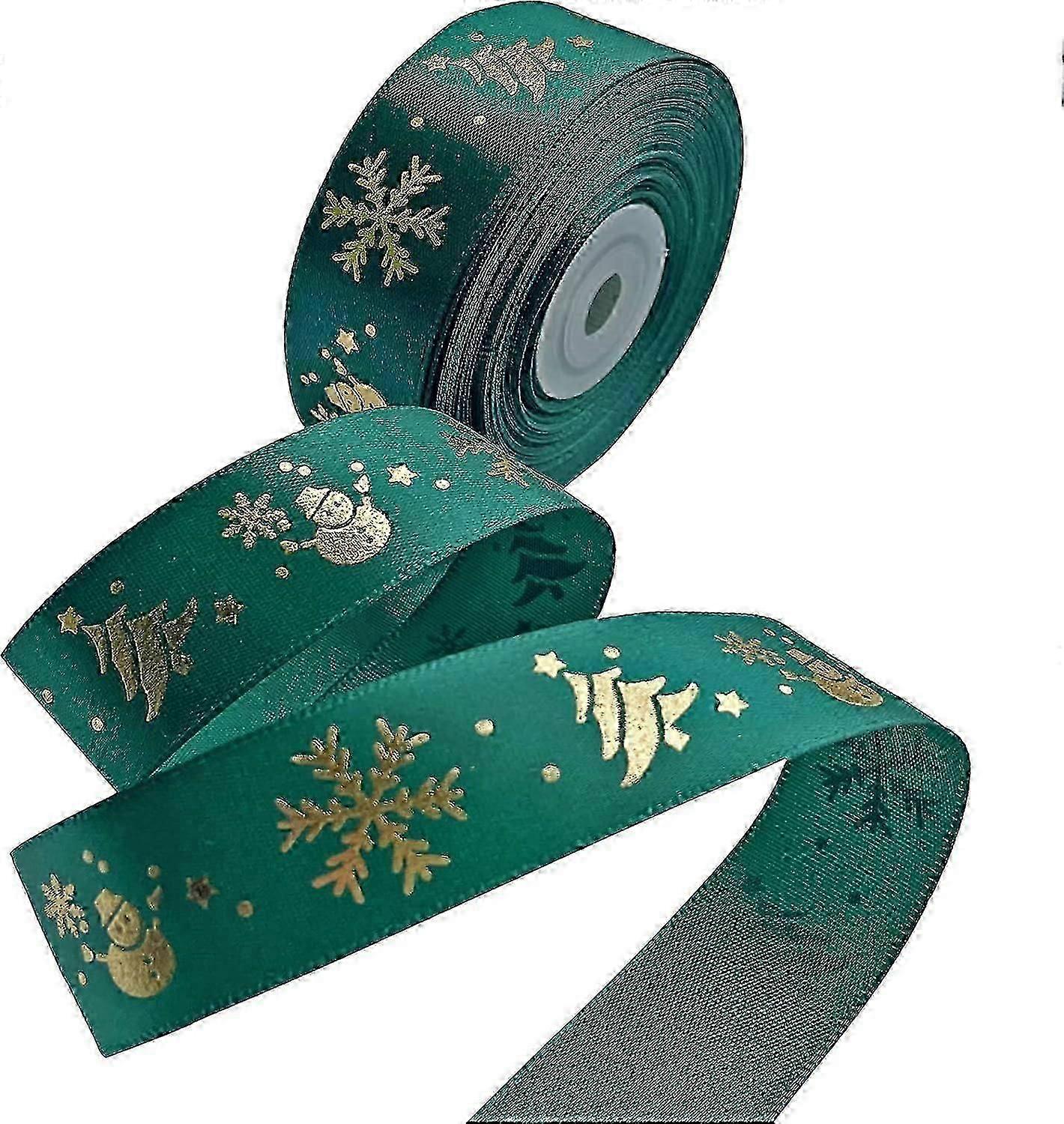 22 Meters Christmas Satin Ribbon Printed Ribbons, Merry Christmas Ribbon, with Golden Christmas Tree Snowman Snowflakes, for Decoration and Gift Wrapp