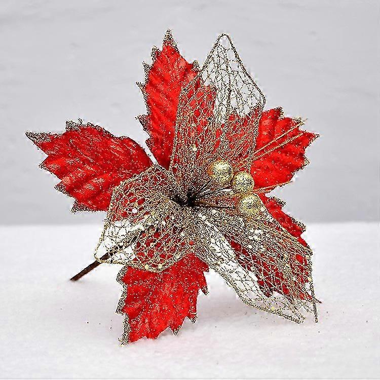 22cm mesh handmade Christmas flowers Christmas artificial flower cuttings Christmas wreath rattan Christmas tree decorations red