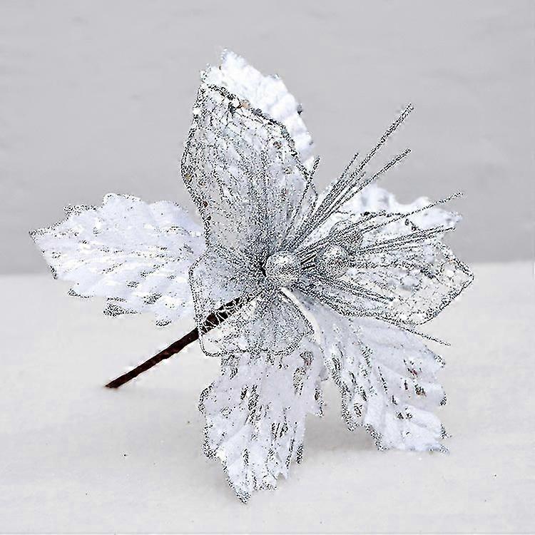 22cm mesh handmade Christmas flowers Christmas artificial flower cuttings Christmas wreath rattan Christmas tree decorations silver