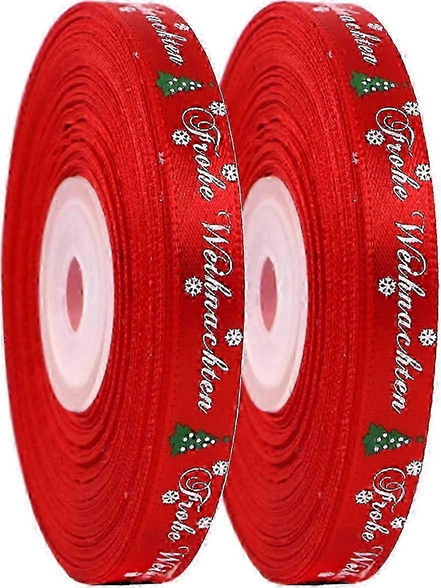 22m Satin Ribbon Pack of 2, 10mm Grosgrain Gift Ribbon featuring a Merry Christmas Design in Red, suitable for various occasions