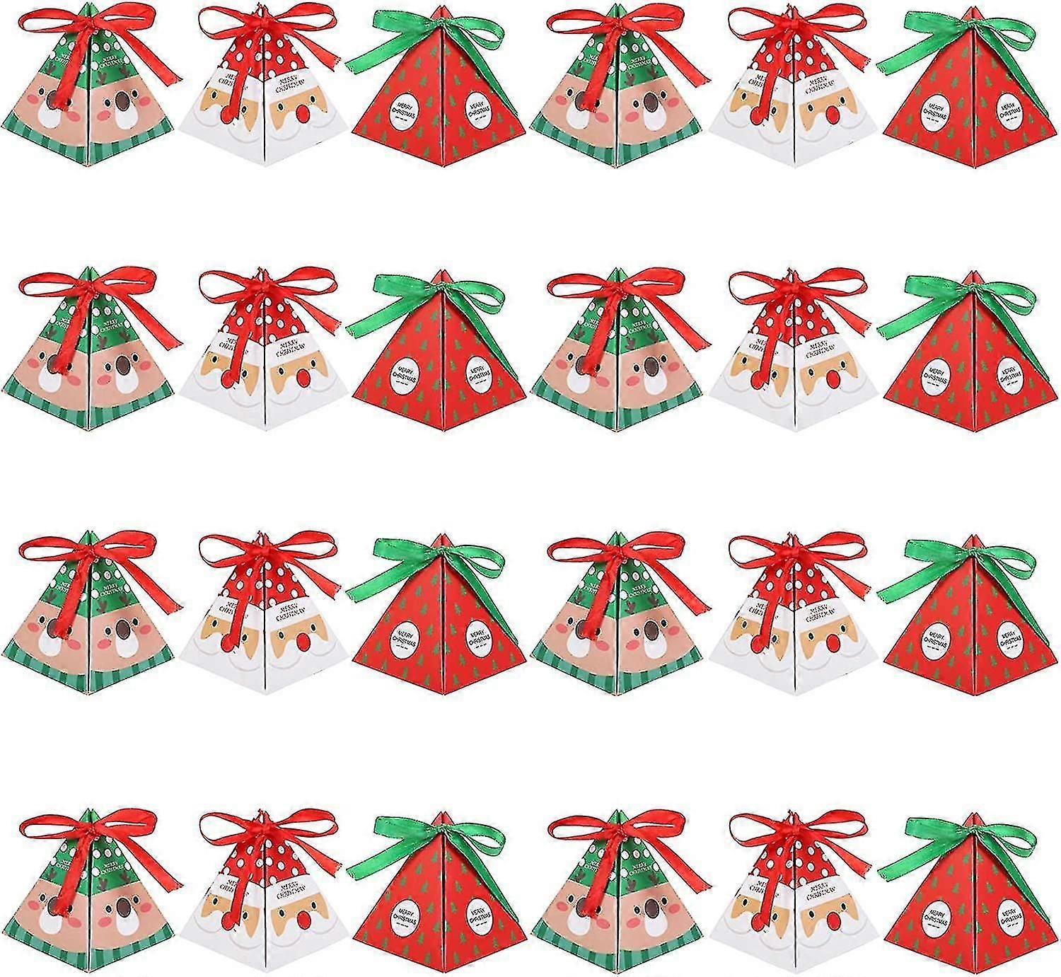 24 Christmas Candy Boxes Triangular Boxes With Ribbons For Cookies And Small Gifts Christmas Decorations @bugu