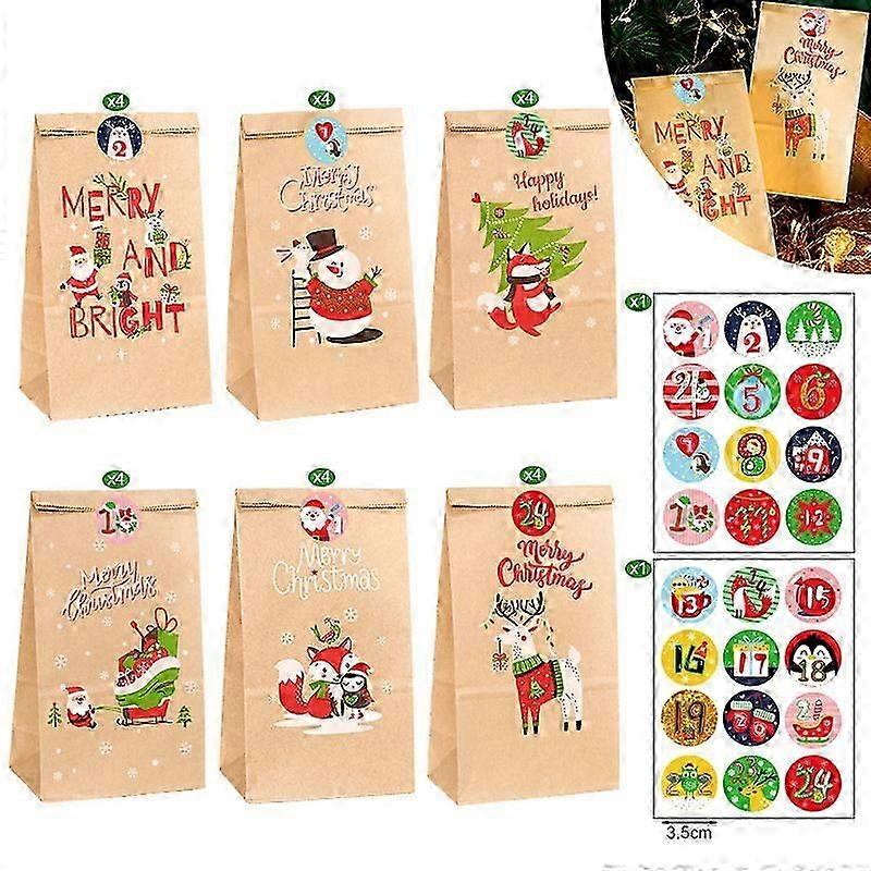 24 Christmas Paper Bags, Christmas Bags, DIY Christmas Calendars with Stickers