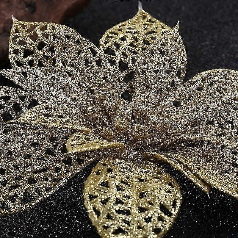 24 gold Christmas Poinsettia flash jewelry, Christmas tree decoration, Christmas flowers, Christmas party Christmas decoration, Christmas tree decorat