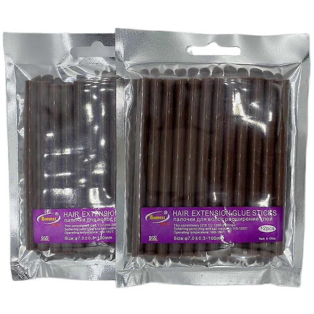 24 Hair Extension Glue Sticks 7x100mm Hot Melt - Black, Yellow, Brown