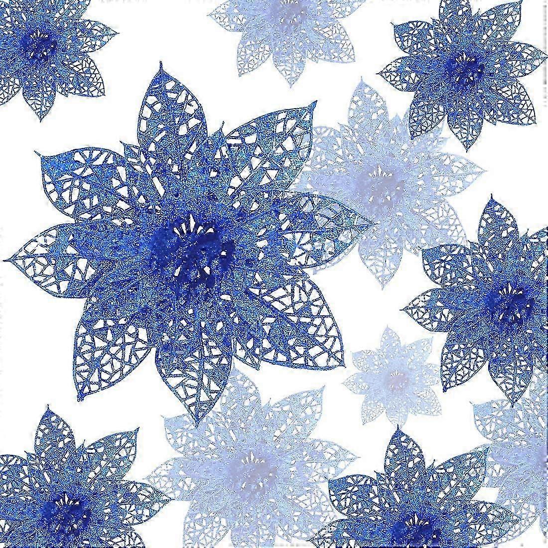 24 pcs Christmas Poinsettia Glitter OrnamentArtificial Christmas FlowersChristmas Tree DecorationChristmas Decor Ornament for Christmas Party Christma