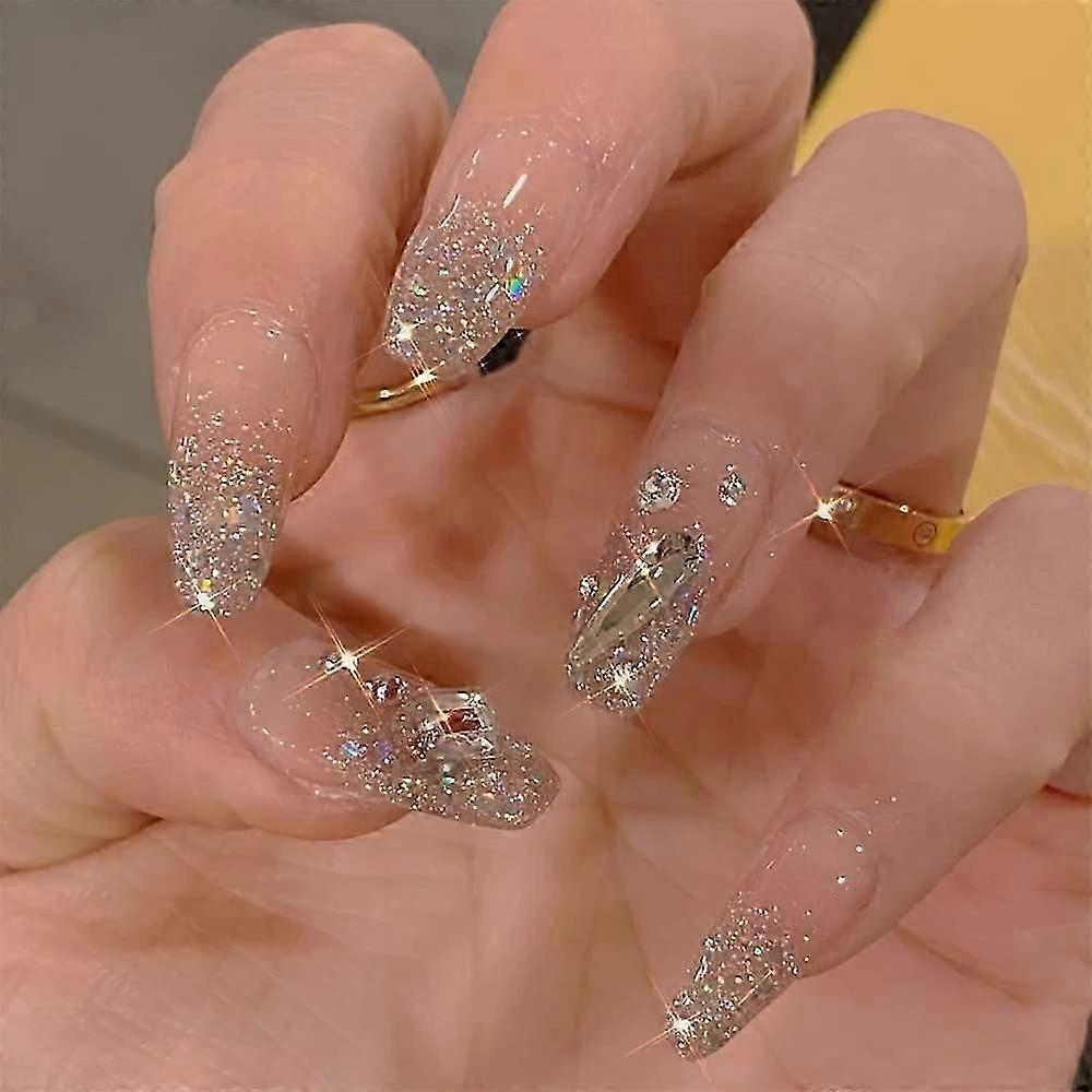 24 Pcs Press On Nails Long Fake Nails Acrylic Ballet French Rhinestone Design Nails For Women And Gi