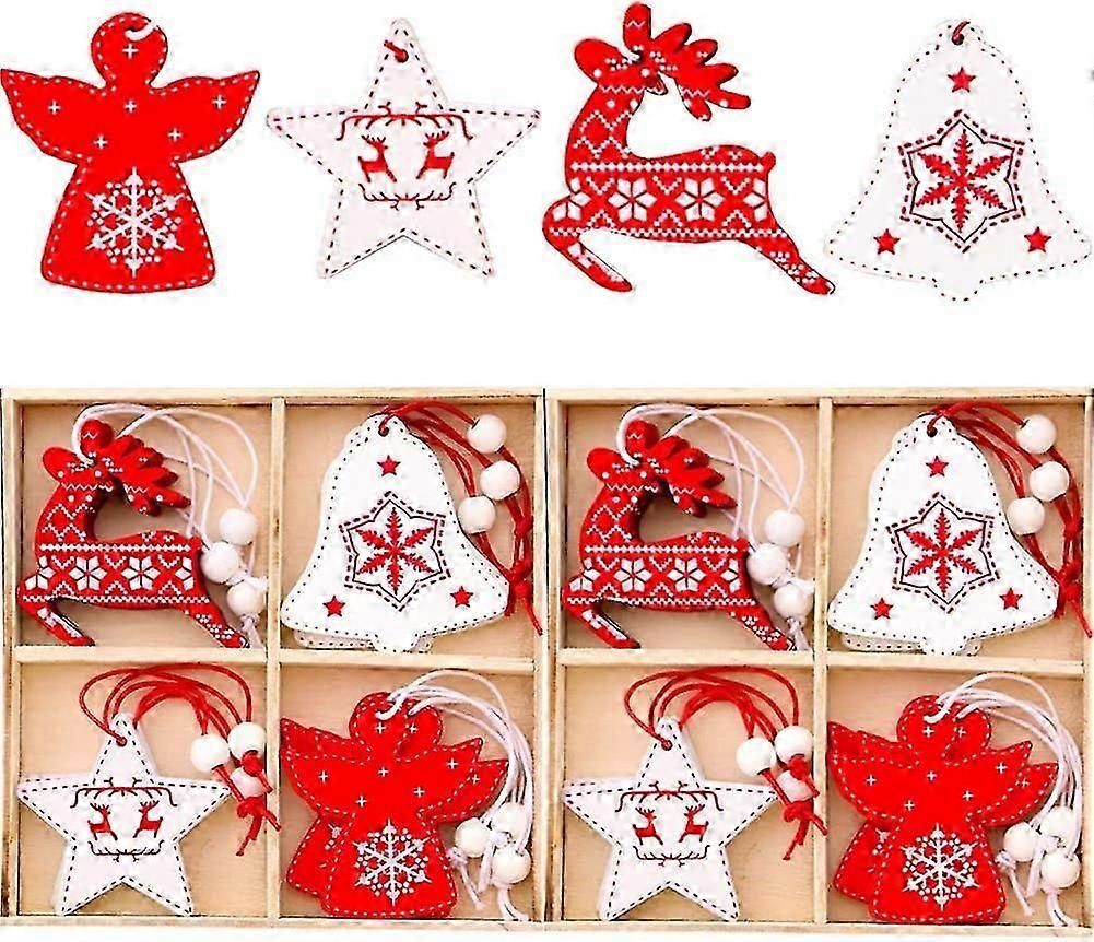24 Pcs Wooden Christmas Pendants Christmas Decorations Wooden Pendants Christmas