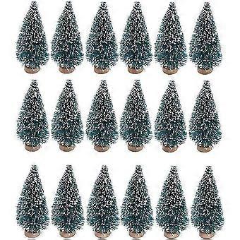 24 Pieces Artificial Mini Christmas Sisal Snow Frost Trees With Bottle Wood Base compatible Blue-green Christmas Party Decoration
