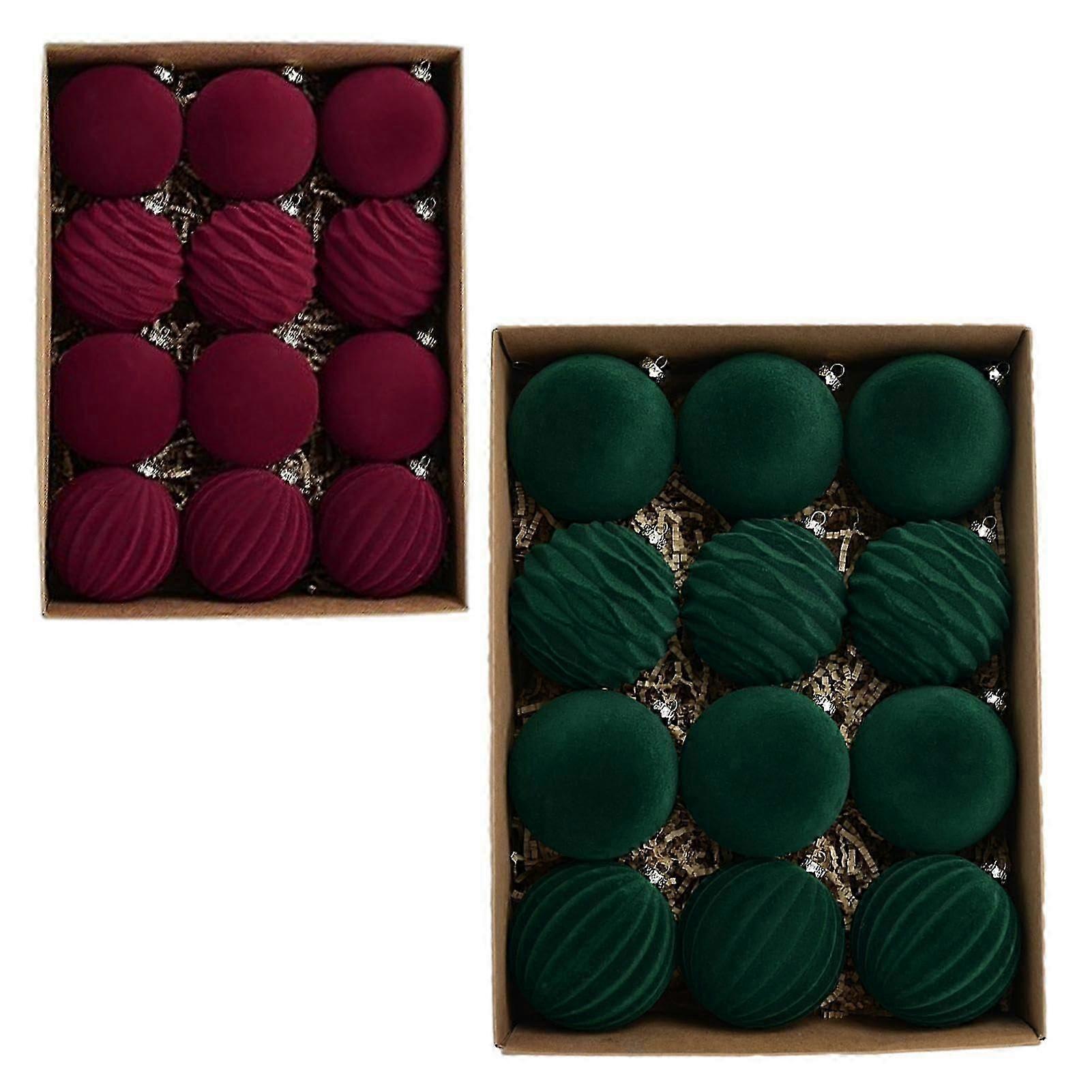 24 Pieces Velvet Christmas Baubles Ornaments Flocked Hanging Ball Decorations for Indoor Outdoor Holiday Decor