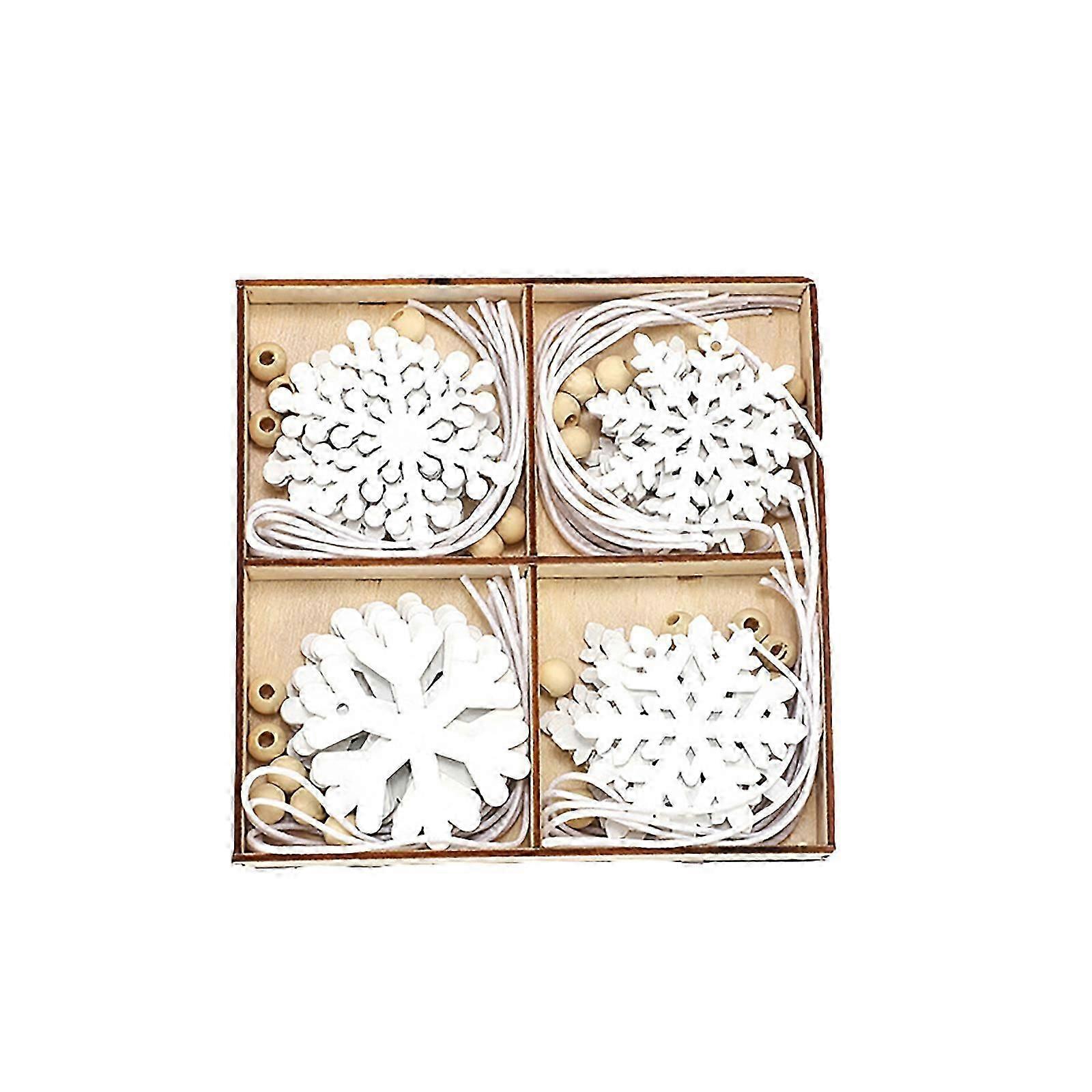 24 Pieces White Snowflakes Ornaments Wooden Snowflake Christmas Tree Ornament