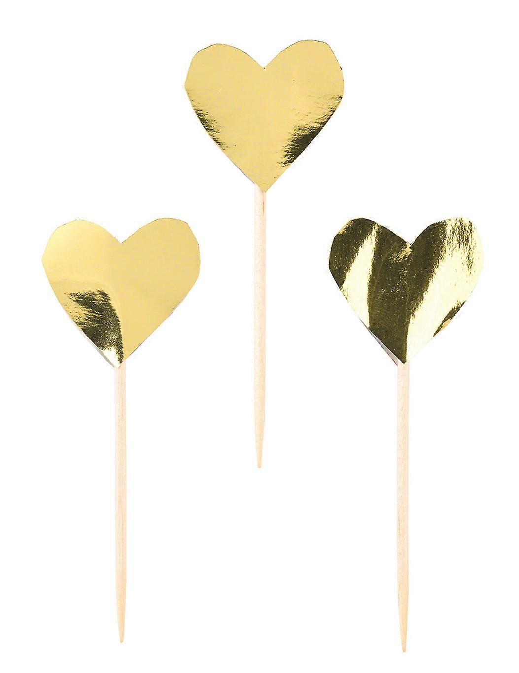 Des cœurs en or pour décorer vos petits gâteaux Matière Bois Accessoires inclus - 24 Piques