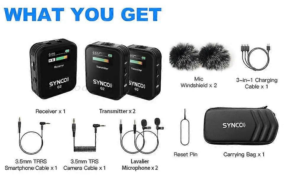 2.4g Wireless Lavalier Microphone Pro For Smartphone Camera Video Studio. Experience Unmatched Audio Clarity with Our Professional Ultracompact Digital Wireless Microphone System, Designed Specifically for Mirrorless and DSLR Cameras. This Versatile System Excels in a Variety of Settings, from Interviews and Vlogging to Professional Studio Use. The Dual Transmitters Feature Built-in Microphones and Can Easily Connect to External Lav Mics, Offering Flexibility Depending on Your Recording Needs. Enhance Your Recordings with Advanced Features Including Gain Adjustment and a Low-cut Function That Filters out Unwanted Background Noise. The User-friendly One-button Mute Design Ensures Smooth Operation During Live Recordings. With a Broad Compatibility Range, It Seamlessly Connects to Multiple Devices Via a 3.5mm Interface. This Comprehensive Kit Includes Two Transmitters, One Receiver, and Optional Accessories Such As a Charging Case, Mic Windshields, External Lav Mics, and More, All Contributing to an Effortless User Experience Whether You're Working in the Studio or out in the Field. Summary of Features: - Wireless Convenience: 2.4GHz Auto-pairing Technology Ensures Seamless Connection and Stability. - Extended Range: Enjoy Up to 492ft/150m Secure Line-of-sight Transmission. - Real-Time Monitoring: Features a Headphone Port for Real-time Audio Monitoring. - Long Battery Life: Quick Charge in 1.5 Hours for Up to 8 Hours of Operation. - Versatile Microphone Setup: Built-in and External Mic Options with a 2-in-1 Charging Cable. - Noise Reduction: 150Hz Low Cut Effectively Filters out Background Noise. - User-Friendly Display: TFT Screen Shows Battery Status, Audio Gain, and Recording Mode. - Compact Design: Lightweight and Easily Portable for On-the-go Use. - Flexible Recording Modes: Options for Mono or Stereo Output. - One-Button Mute: Simplifies Operation Without Powering Off. Explore New Possibilities with Robust Audio Solutions Tailored for Creators Serious About Sound Quality.. Your order tracking code will be sent on shipping and takes up to 5 days to show live information.