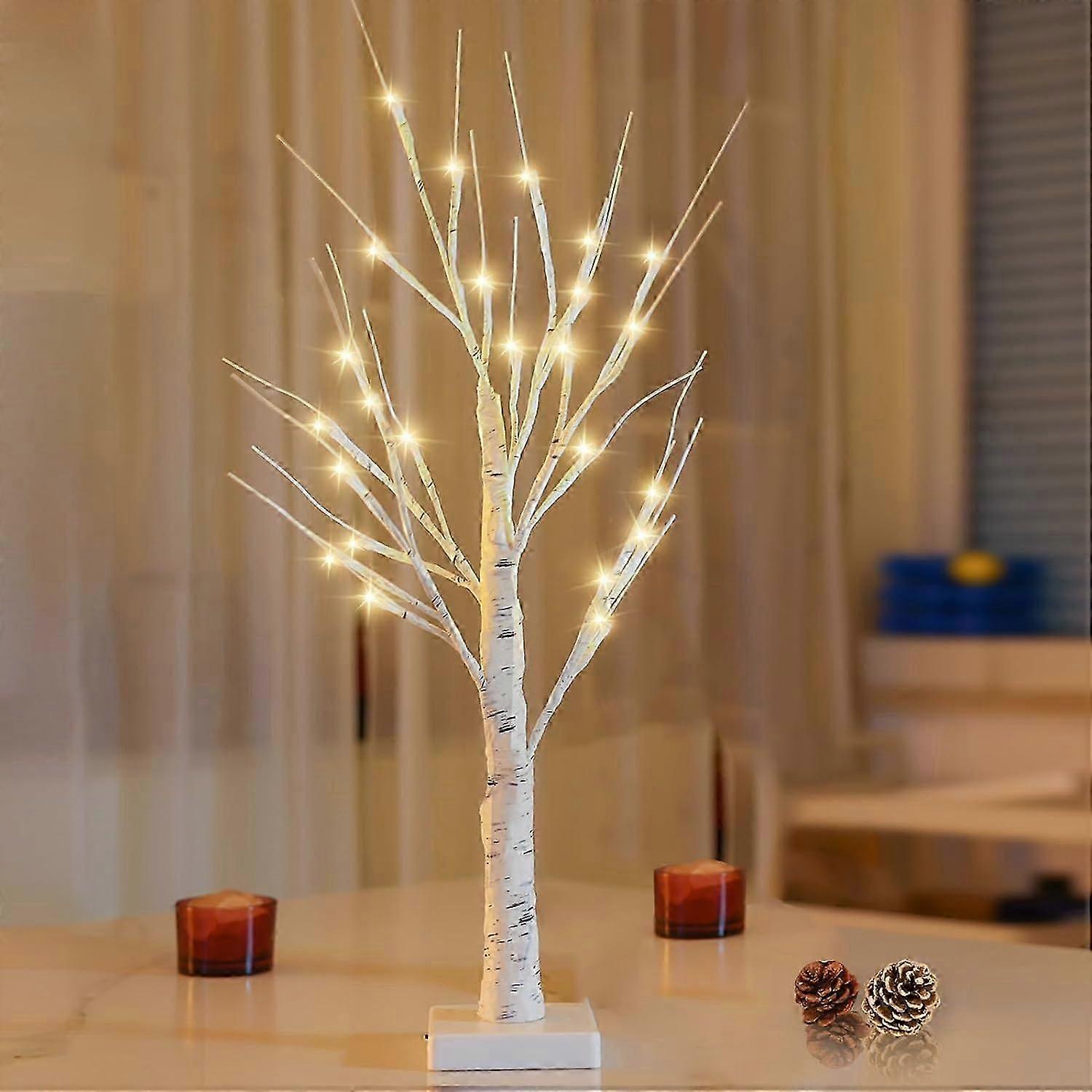 24LED Lighted Birch Tree, Pre-lit Tabletop Christmas Tree Lamp, Xmas Home DIY Decorations