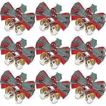 24pcs Christmas Bow With Bells Xmas Wreaths Bows Mini Christmas Tree Bows Christmas Decorative Bows Fabric Hanging Decorations Ornaments