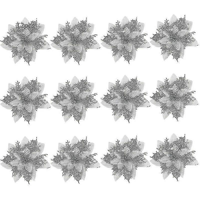24pcs Christmas Flowers, Artificial Christmas Flowers, Glitter Christmas Tree, Artificial Flowers Christmas,