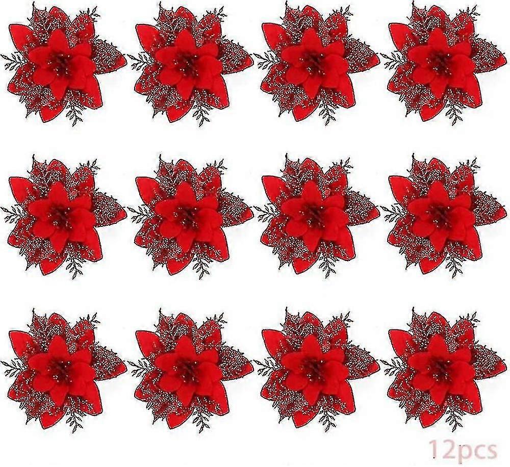 24pcs Christmas Flowers, Artificial Christmas Flowers, Glitter Christmas Tree, Artificial Flowers