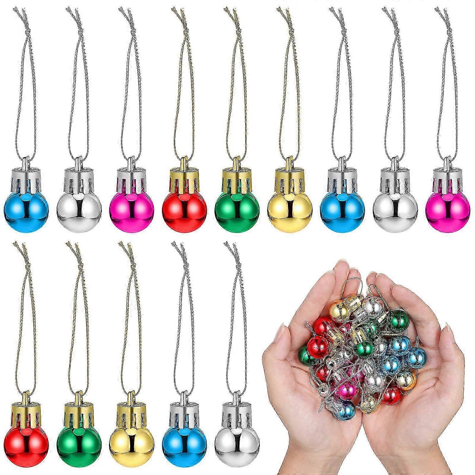 24pcs Miniature Christmas Ball Ornaments 2cm Mini Xmas Tree Pendant 0.79 Inch Shatterproof Small Christmas Baubles Mixed Color Ornaments For