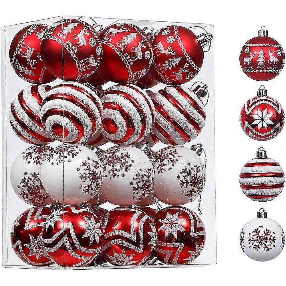 24pcs Red and White Christmas Balls Decorations Set Christmas Ball Ornaments Shatterproof Balls with Strings Multicolored Hanging Christmas Balls for