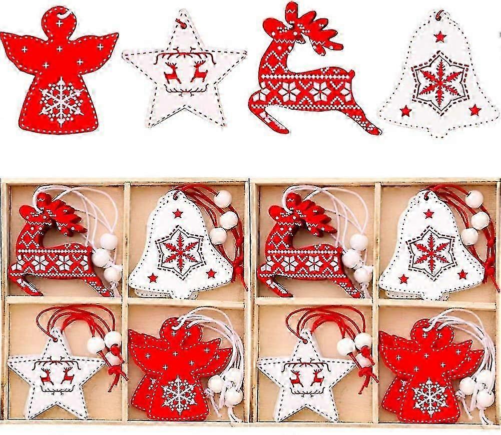 24pcs Wooden Christmas Pendants Christmas Ornaments Wooden Pendants Christmas Trees