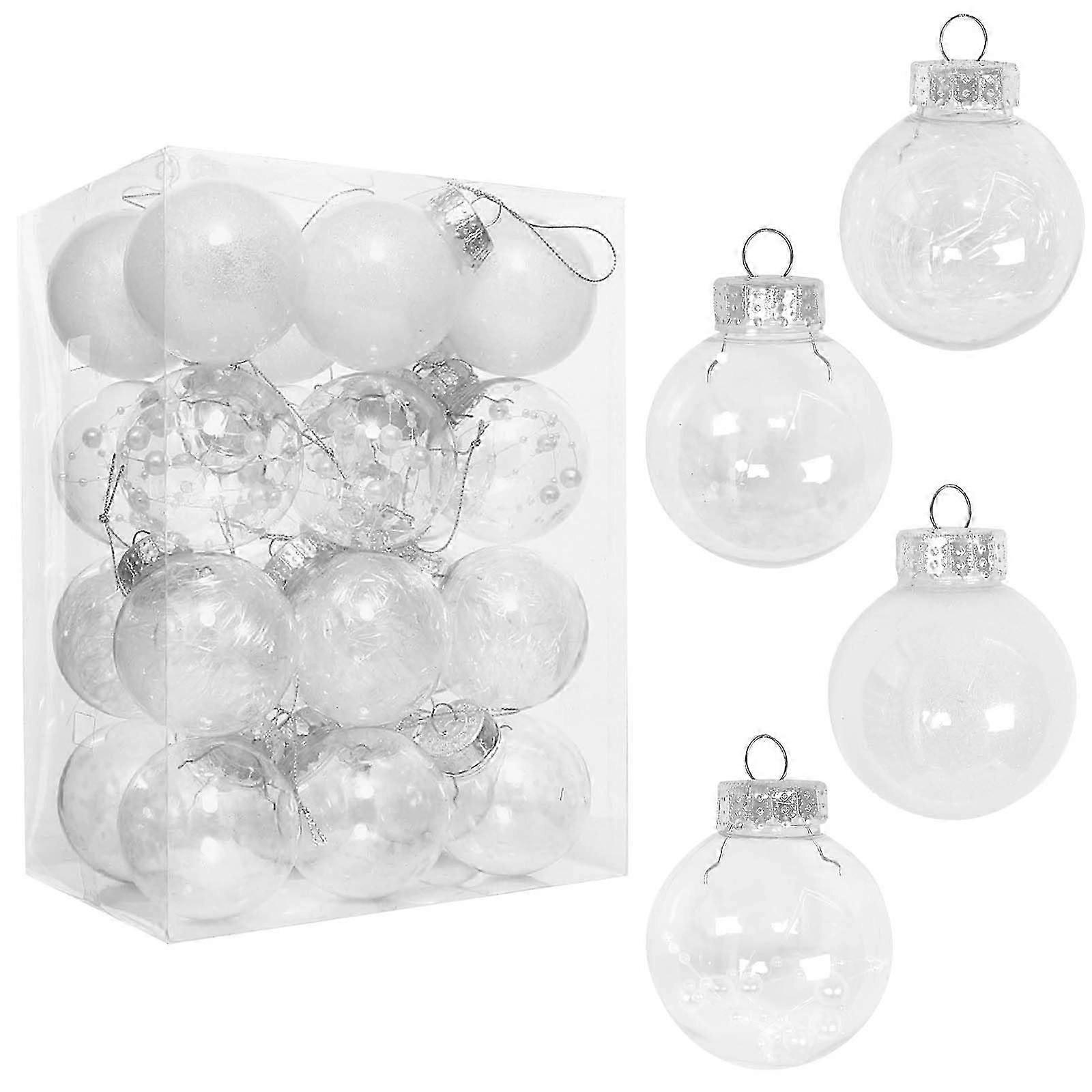 24Piece White Christmas Tree Baubles Set, 6 cm, Plastic Ornaments with Sequ