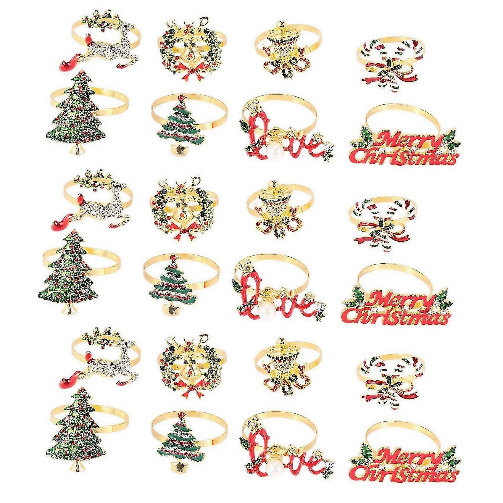 24X Christmas Napkin Rings Napkin Holder Rings for Holiday Christmas Table Decoration Napkin Buckle