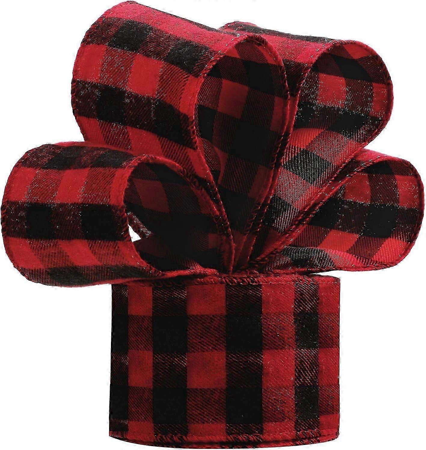 2.5 Inch Christmas Plaid Hessian Ribbon Gingham Wrap Ribbon with Spool for Christmas Decoration Gift Wrapping Party Decoration red