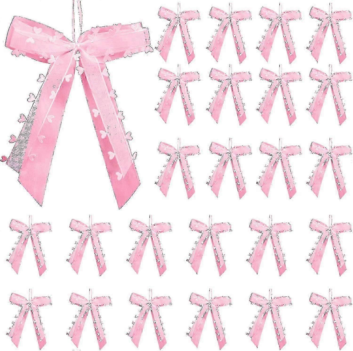 25 PCS Christmas ribbon bow pink jewelry with a ribbon with a heart(pink) Walkbee 1114 B