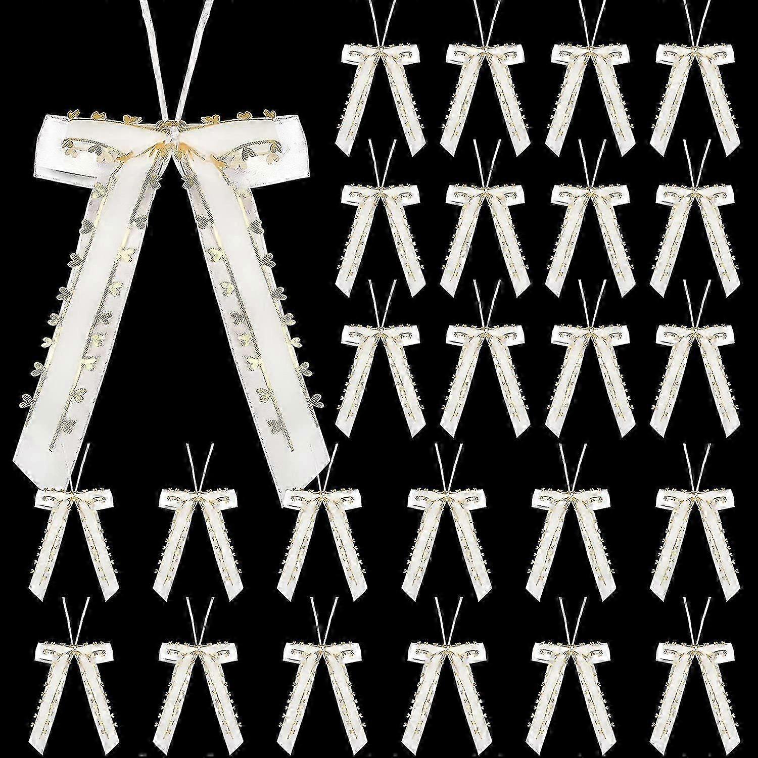 25 Pcs Christmas Ribbon Bows, Pink Ornaments Ribbon Bow With Heart