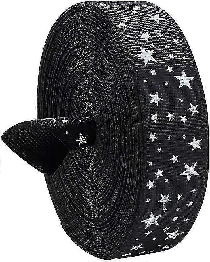 25 Yards Stars Printed Ribbons, 1inch Black Decorative Grosgrain Ribbon with White Stars Polyester Craft Ribbon for Bows Making Gift Wrapping Christma