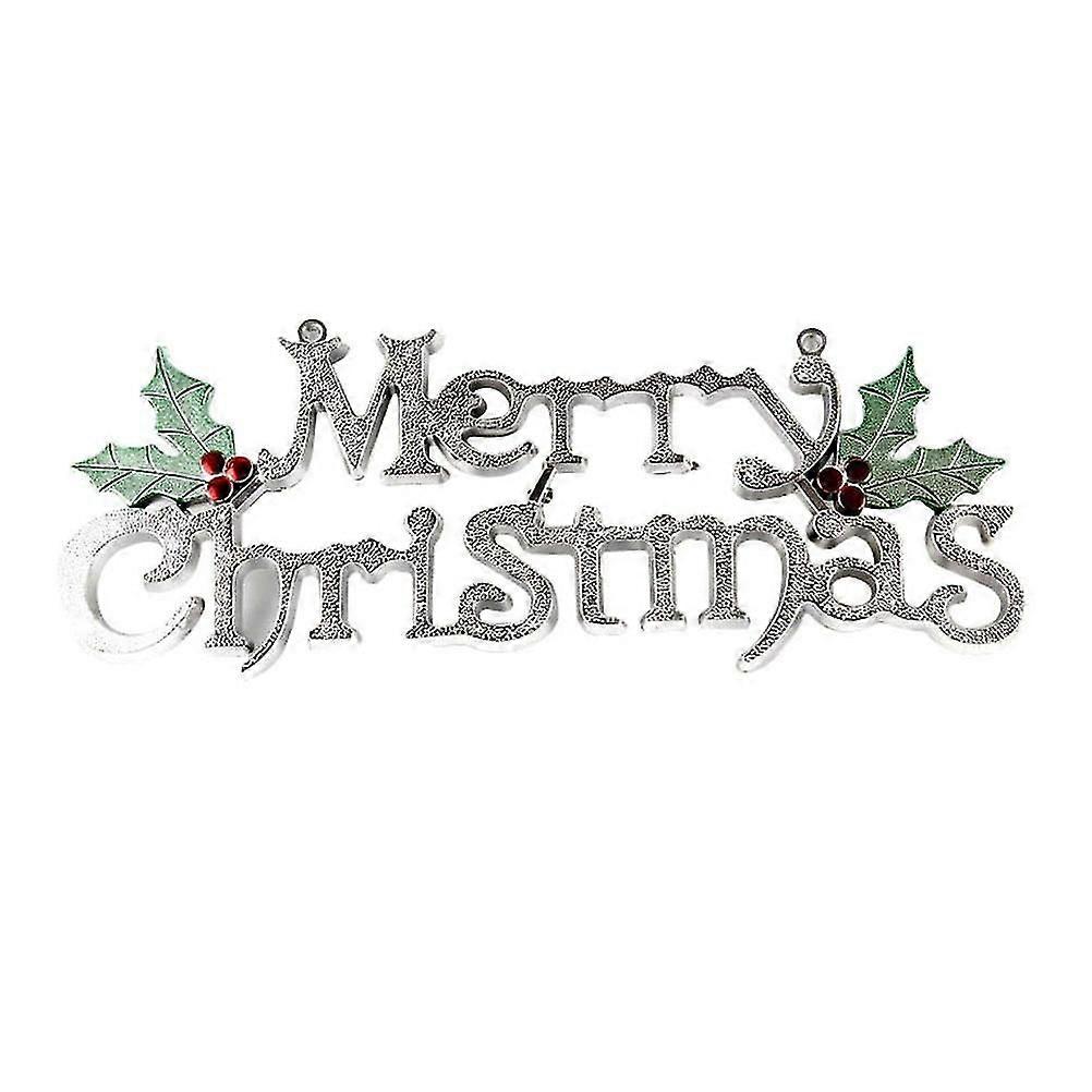 25cm MERRY CHRISTMAS Door Hanger Christmas Tree Ornament Holiday Signs Decoration Party Decorative (Silver)